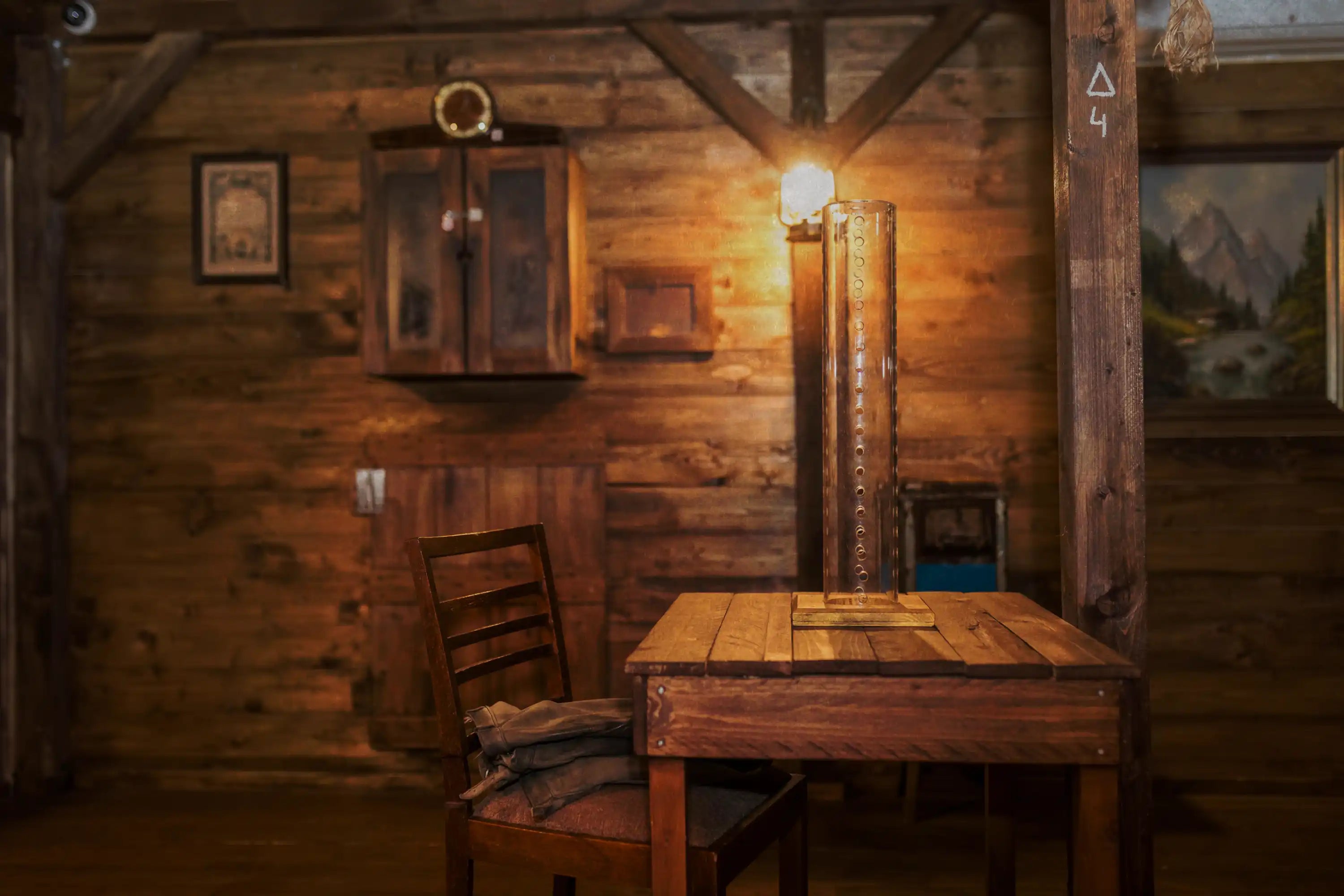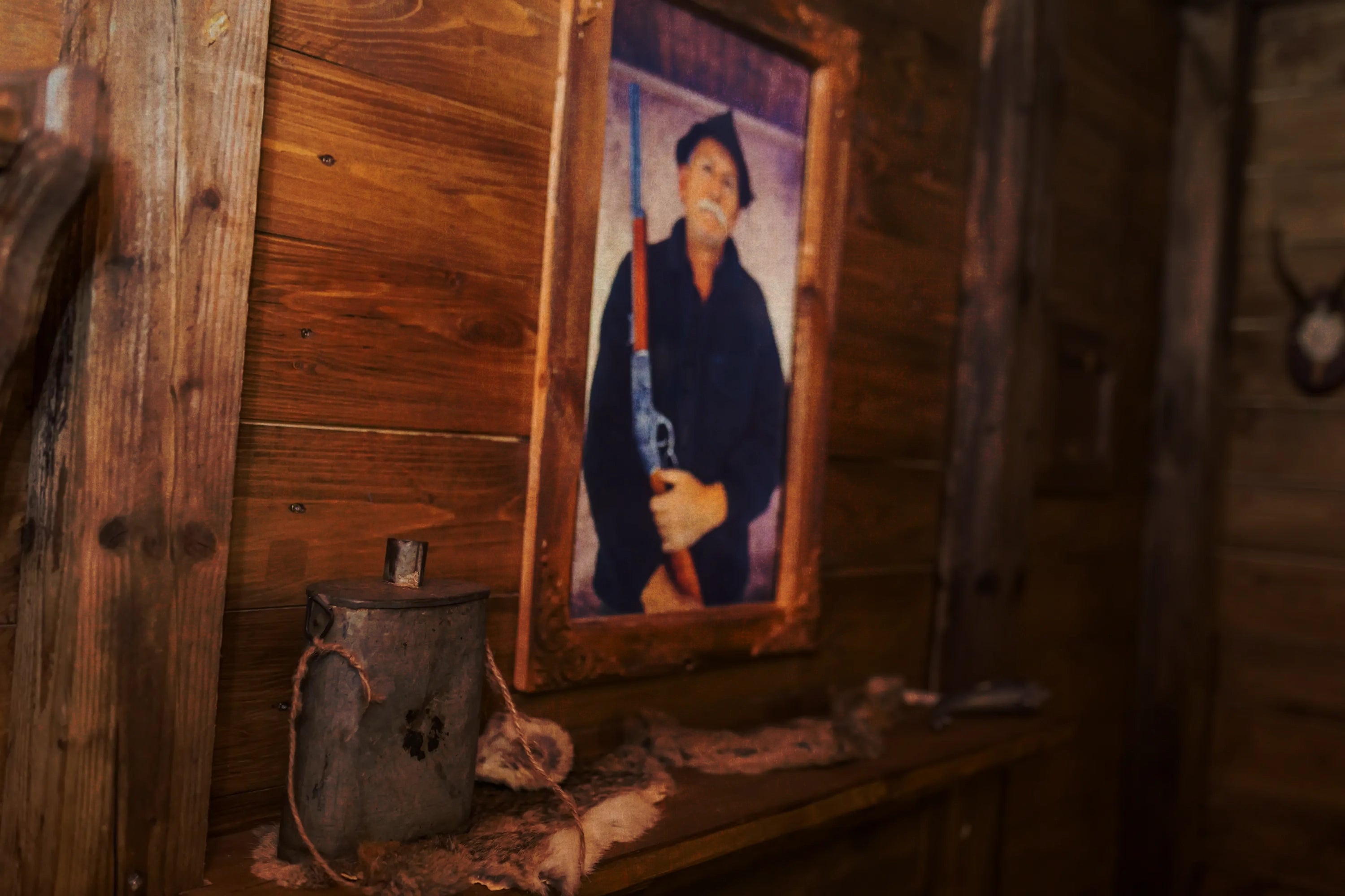 Since an uncomfortable night awaits you, you decide to seek shelter in the cabin. After repeated knocking and calling, you realize that the cabin seems uninhabited. You manage to open the door. Excited, you step inside. Judging by the furnishings, a hunter lived here. But some things make it seem as if he didn't leave the cabin voluntarily.