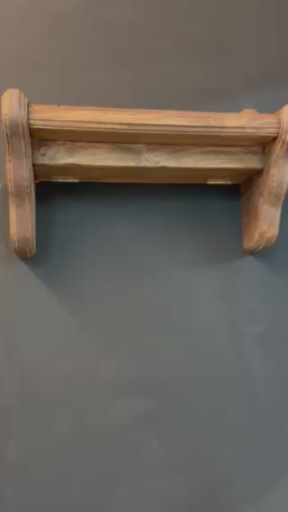 Étagère en bois de style ancien avec compartiment secret sur sa face inférieure.